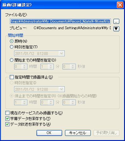 録画ファイルの保存先フォルダ:C:\Documents and Settings\Administrator\My Documents