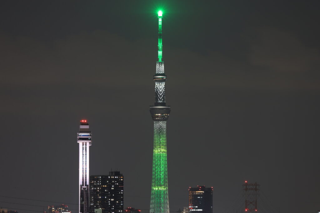 昨日の夜も東京スカイツリーの新色特別ライティングだったので撮影しました。